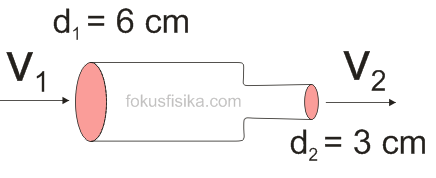 Jika luas A₁ dan A₂ berturut-turut 5 cm² dan 4 cm², kecepatan air pada luasan yang lebih kecil adalah ….
